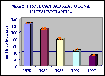 na žalost i danas koncentracija olova ostaje na istom nivou u