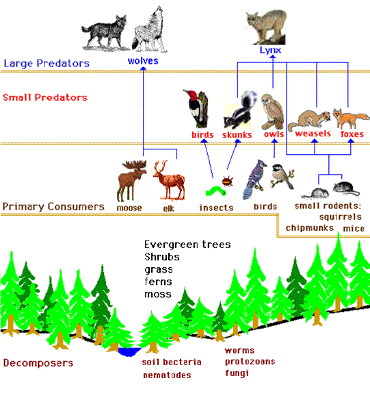 Treći trofički nivo čine sekundarni potrošači, mesojedi koji se