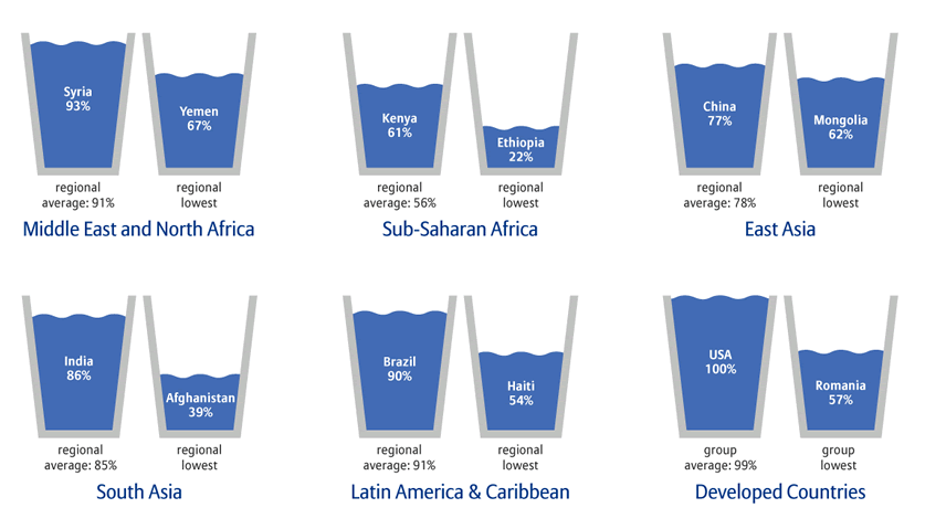 Procenat populacije koja je nastanjena na udaljenosti od jednog kilometra od izvorišta vode, koje može dnevno